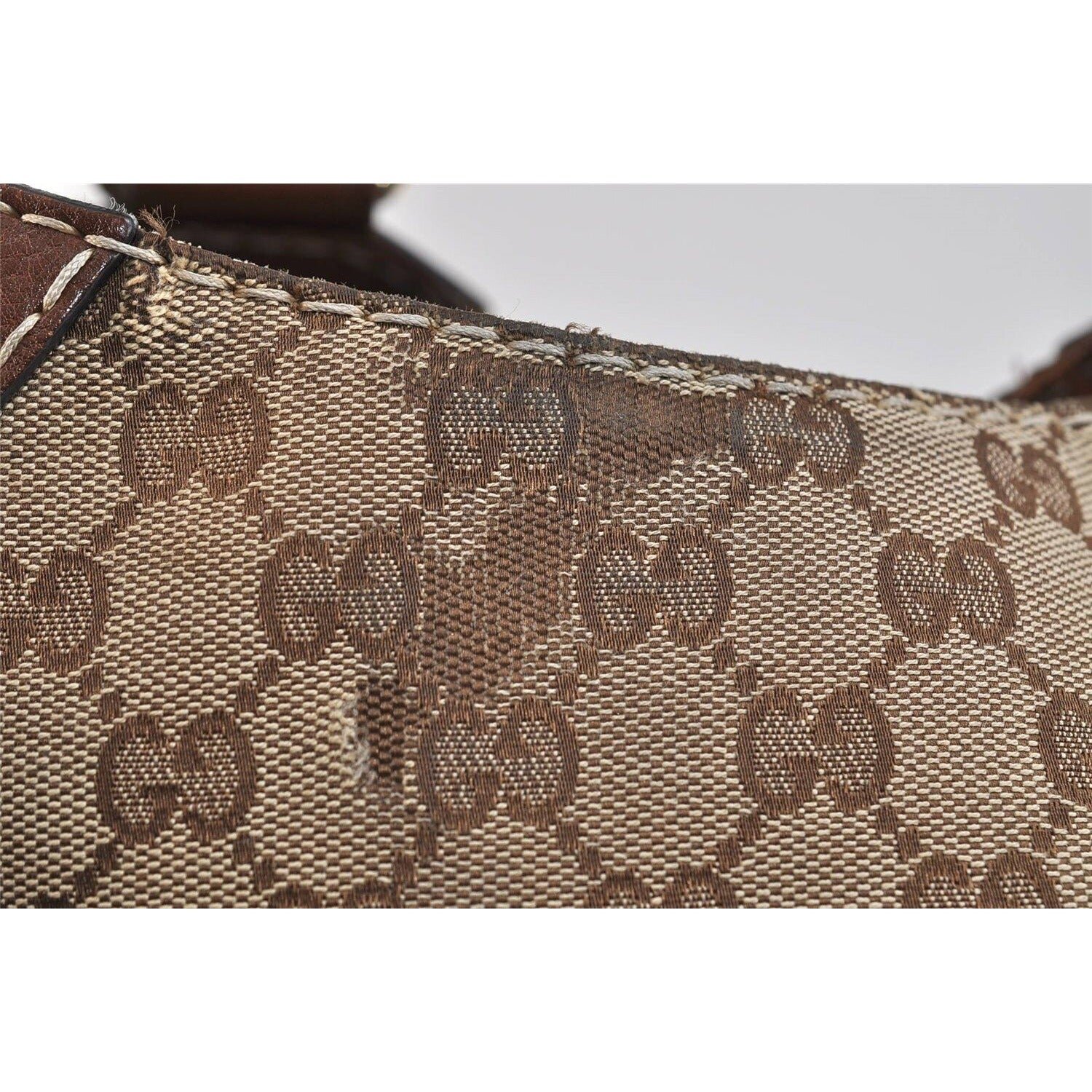 Condition notes: This purse is in excellent condition, but the leather and hardware may show minor scratches, and there is minor wear to the 1st layer of the Guccissima print fabric on the back of the purse as is shown in the closeup.
