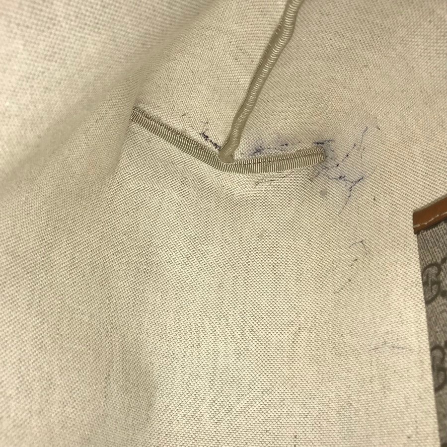 There are wrinkles, creases, and scrubscratch on the leather at the opening.
