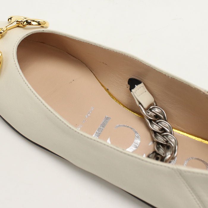 | Title | GUCCI 621161 pumps Horsebit Chain pointed toe flats leather white Women |